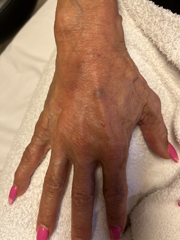 Our experts in OC Beauty Med Spa do a profound exam of your hand structure and mark the points of maximum volume lost on that area. After numbing with cream, the filler will be injected and placed under the skin with a small needle to fill the skin up and smooth out the wrinkles.